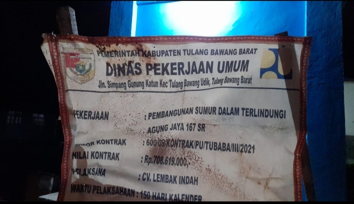 Pasalnya,Proyek Dana Alokasi Khusus(DAK) Dinas Pekerjaan Umum dan Penataan Ruang (PUPR) Tubaba yang dikerjakan oleh CV.Lembak Indah dengan nomor kontrak:600/09/Kontrak/PU/TUBABA/2021 dengan Nilai Anggaran sebesar Rp.708.619.000 dari awal pembangunan tidak berfungsi.