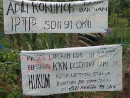 Di tempat terpisah Alis kelana selaku ketua Lembaga Swadaya Masyarakat Kemilau Cahaya Bangsa Indonesia (KCBI) Sumsel menuturkan” Terkait hal tersebut Kami akan menindak lanjuti ke penegak hukum, Karna bantuan Dana PIP tersebut di duga banyak terjadi penyelewengan serta membuat resah orang tua siswa, Bahkan masyarakat di desa Bunga Tanjung tersebut Sampai memasang spanduk Terkait dana Bantuan PIP di SD N 91 Oku, Yang jadi pertanyaan kita semua tidak mungkin sampai seperti itu kalau tidak ada masalah” Jelasnya