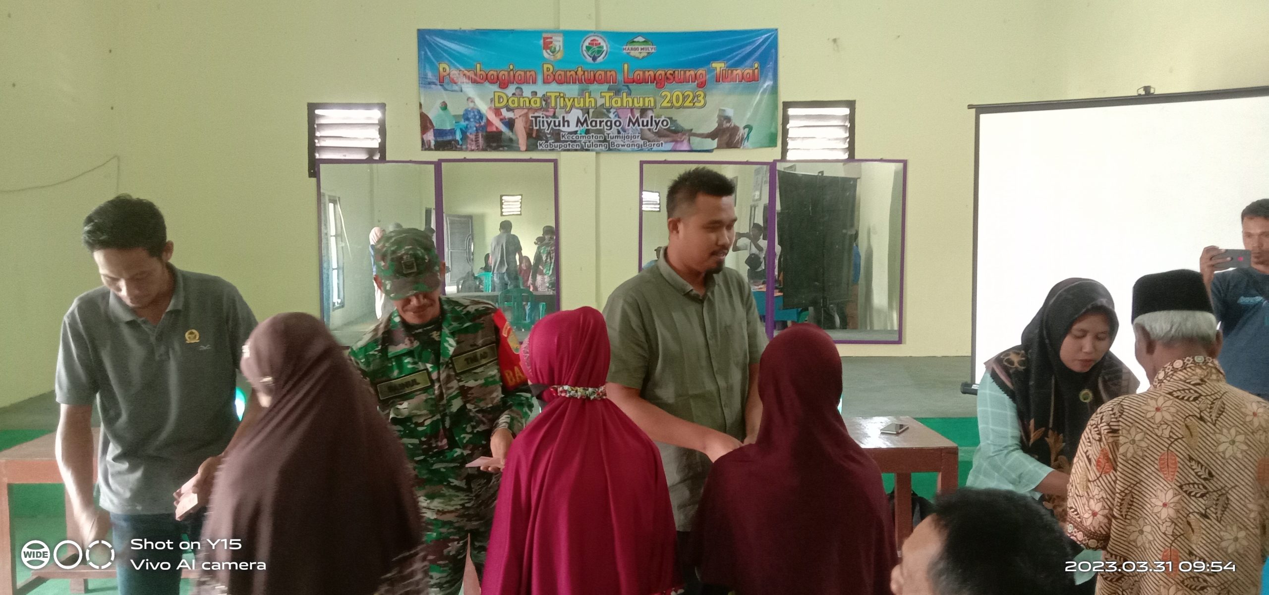 Penyaluran Bantuan Langsung Tunai (BLT) tersebut berlangsung di balai Tiyuh Margo Mulyo, yang di hadiri Kepalo Tiyuh Margo Mulyo Fajar Ria Kurniawan,ST,.MM, Babinsa, aparatur Tiyuh Margo Mulyo, dan puluhan KPM, Jum’at (31/3/2023).