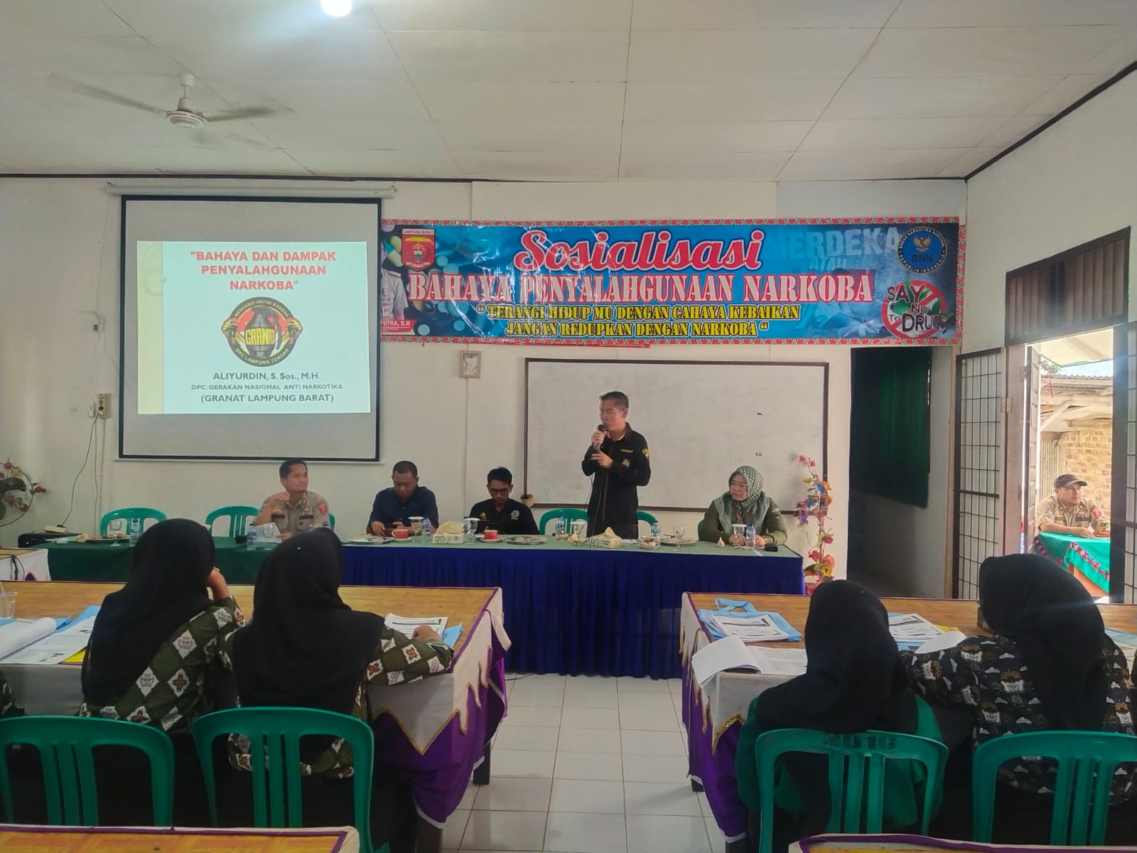 Kapolres Lampung Barat AKBP Heri Sugeng Priantho.S.I.K.,M.H., melalui Kasat Narkoba Polres Lampung Barat Ipti Joni.yang di wakili Kanit Narkoba mengatakan tujuan dari kita laksanakan sosialisasi ini untuk memberikan pemahaman dan wawasan kepada para pelajar tentang kenakalan remaja dan penyalahgunaan narkoba.