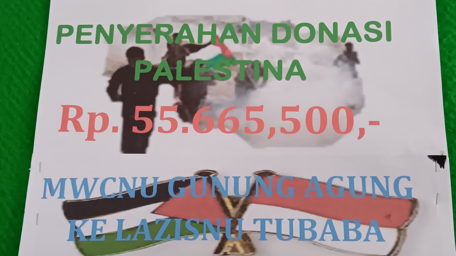 “Bentuk kepedulian kami terhadap warga Palestina, hari ini kami menyerahkan donasi sebesar 55.665,500,- ke palestina melalui Lembaga Amil Zakat Infaq dan Shodaqoh dari Nahdlatul Ulama (LAZIS NU) Tubaba,” kata Widianto.