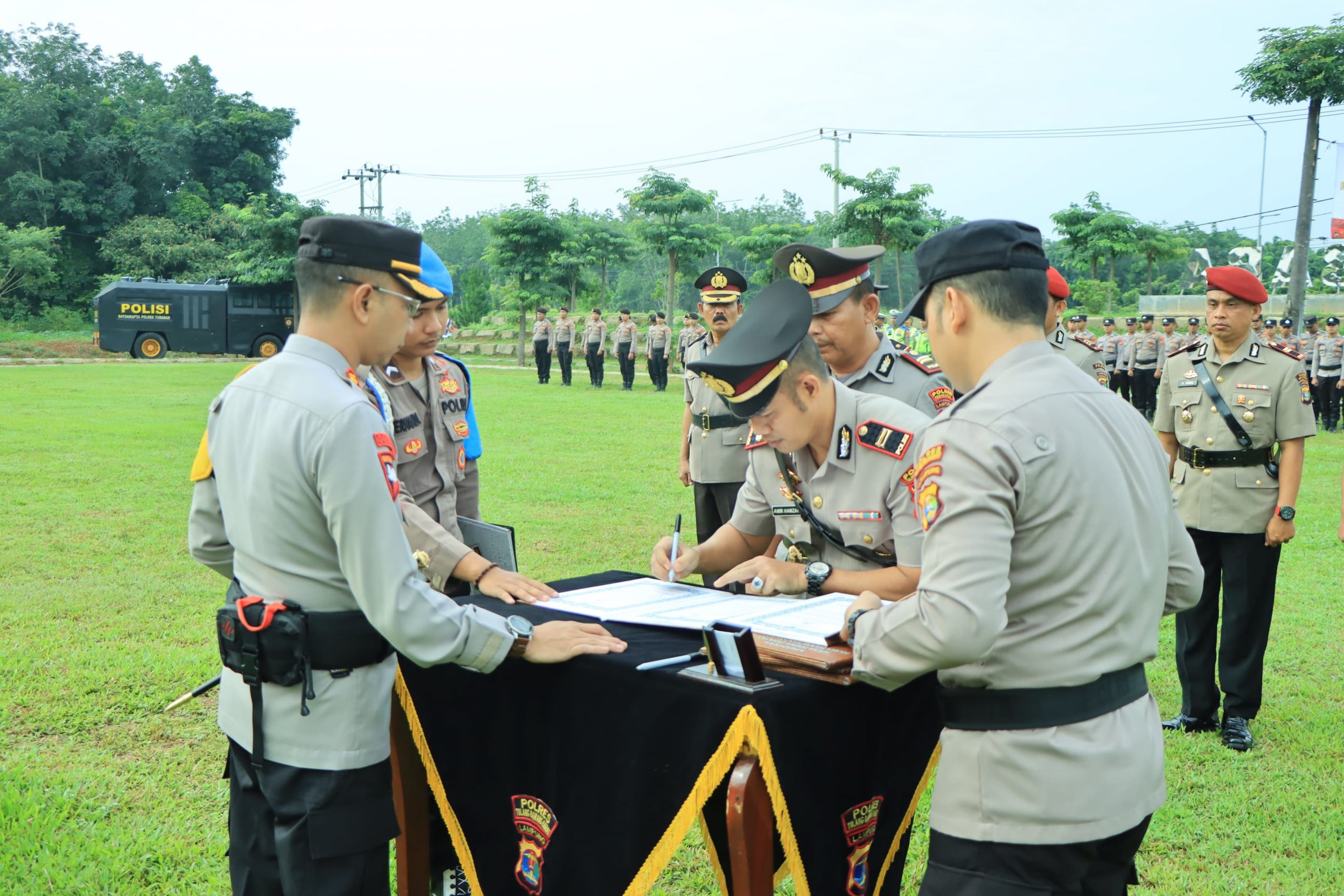 Tulang Bawang Barat-Kapolres Tulang Bawang Barat AKBP Ndaru Istimawan., S.I.K pimpin upacara Serah Terima Jabatan (Sertijab) Kabag Ops, Kasat Reskrim, Kasat Lantas dan Kapolsek Gunung Agung yang dilaksanakan di Lapangan Apel Mapolres Setempat. Sabtu (04/05/24).
