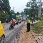 Satlantas Polres Pringsewu Lakukan Rekayasa Lalu lintas dilokasi Truk Tangki Pengangkut CPO Patah As